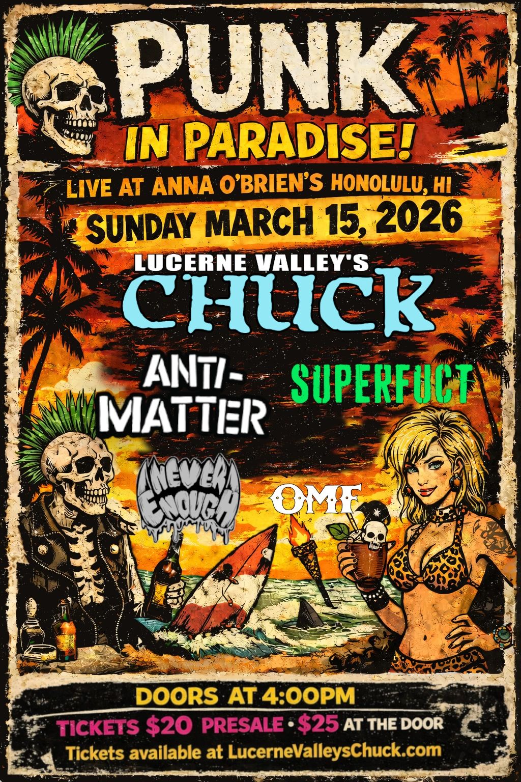 For the first time ever Lucerne Valley's Chuck will be hitting the Islands! 3 Islands, 3 shows! Going to be a blast!