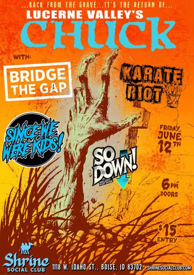 Chuck is back in Boise! Come join us at the Shrine Social Club Basement. Get there early we have a stacked line up of some killer bands. Going to be a blast!